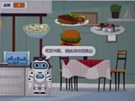 餐厅里有一个自动结算机器人,当顾客点击菜品,再点击机器人,它会自动报出顾客应付的金额。