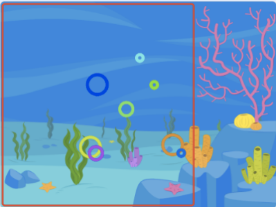 (1)小猫角色隐藏,在如下图所示的红框区域绘制彩色气泡,红框最右侧的x坐标为100;、