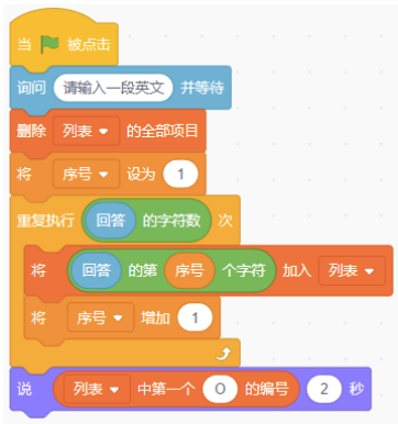 scratch运行下列程序,输入“apple”,最后说出的值是“1”。