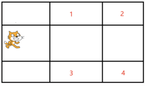 小猫会根据"方案"列表中的信息进行移动,列表序号为奇数的值,表示运动的方向,其后面一个数字,表示移动的格数。scratch运行下列程序后,小猫会移动到哪里?