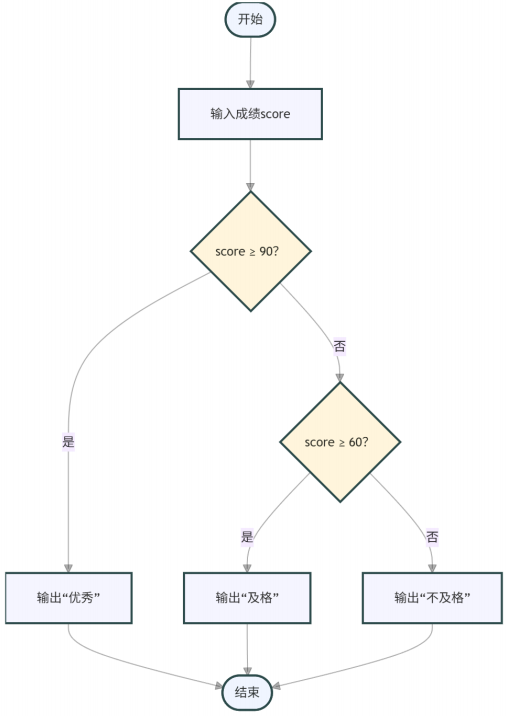 根据下面的流程图,如果成绩 score 输入 60 ,输出的结果是?
